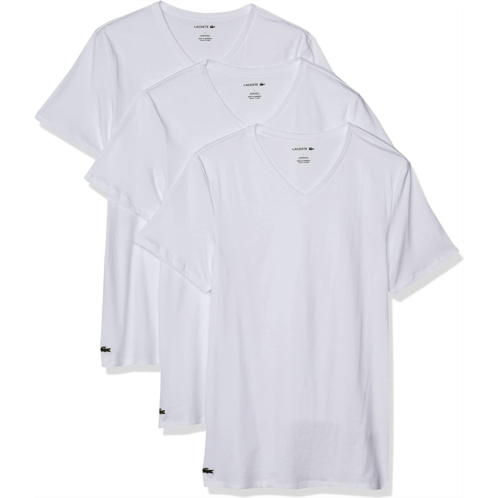 [US] Lacoste mens t-shirts essentials 3 pack 100% cotton slim fit v-neck white tee