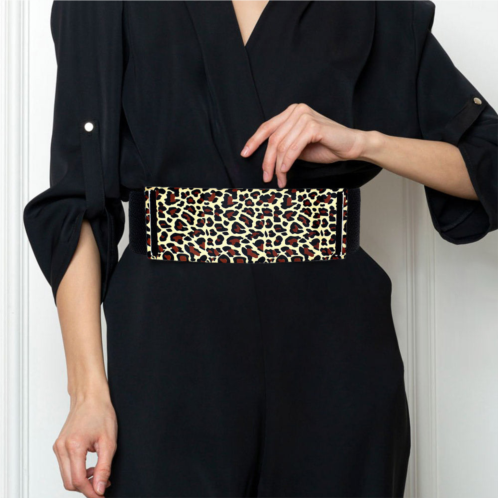 [US] FASHNZFAB bold leopard metal plate elastic belt