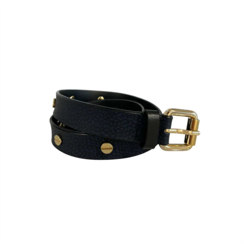 Unleash your inner fashionista with the Borbonese adjustable belt, a true symphony of style and function. Tailored to perfection, this belt features a micro spotted print that speaks volumes of your quirky yet sophisticated taste. The golden buckle adds a splash of opulence, and the luxurious gold details catch the light with every move. Measuring 80cm x 2.5cm, it’s the perfect statement piece for cinching your waist and accentuating your silhouette. Crafted from a superior blend of materials, with a touch of Italian leather, this accessory embodies both elegance and durability.