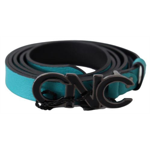 is crafted from blue green leather, this stylish belt featuring black plated logo metal buckle fastening.
