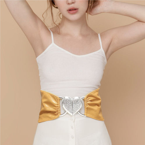 [US] FASHNZFAB crystal rhinestone heart stretch elastic belt