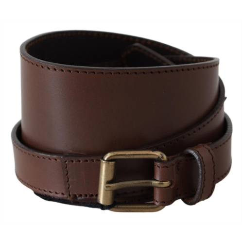 is crafted from leather fabric, this dark brown belt featuring rustic gold tone hardware and a metal buckle fastening.