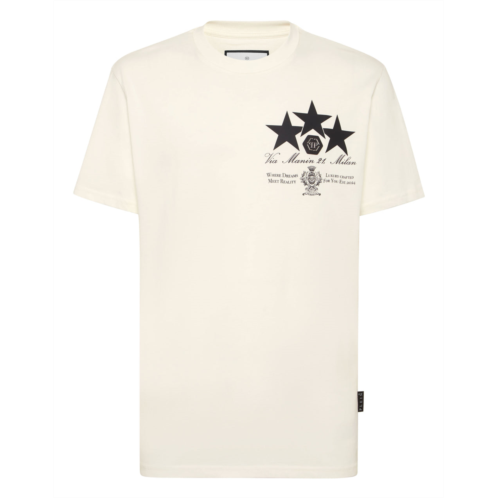[US] PHILIPP PLEIN round neck t-shirt leather patch stars