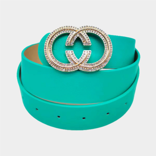[US] FASHNZFAB rhinestone embellished buckle accented faux leather belt