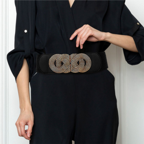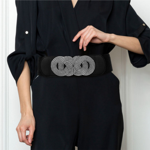 [US] FASHNZFAB interlocking circle buckle accent wide elastic waist belt