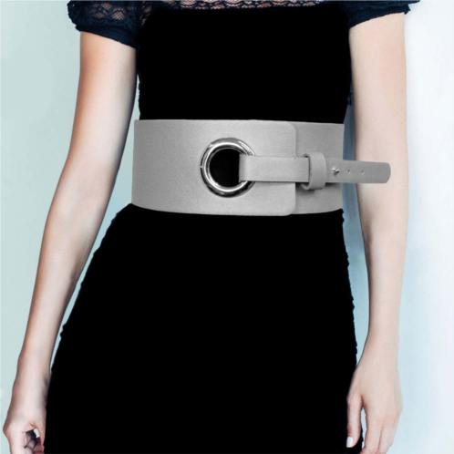 Size - 3' HApproximately 34.5' LStretchableElevate your outfit with this stylish wide belt featuring a modern circular metal ring buckle. Designed to define the waist and enhance any ensemble, it pairs effortlessly with dresses or layered looks, offering a chic and contemporary finishing touch.