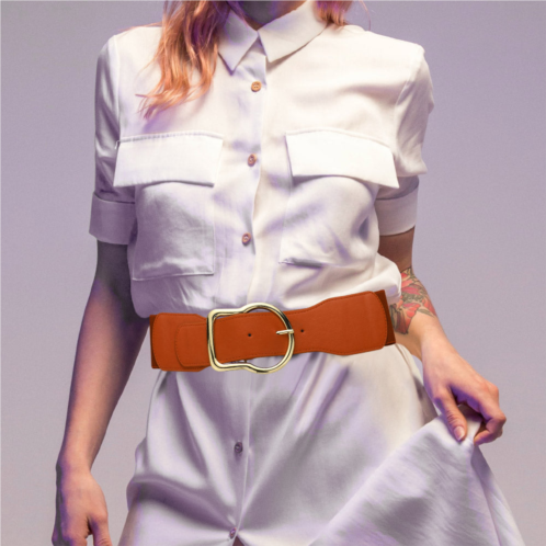 [US] FASHNZFAB metal buckle pointed elastic belt