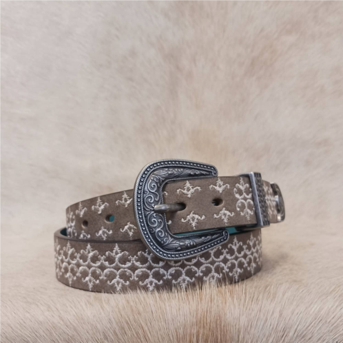 The perfect belt can really tie an outfit together and this one is no exception. Classic in its design and built to last, this belt can complement any outfit.Elevate your style with the Catchfly Women's Belt featuring elegant embroidery in a subtle taupe hue. This accessory is adorned with an antique nickel buckle, keeper, and tip for a sophisticated finish. Perfect for adding a touch of finesse to any outfit. Its timeless design ensures both durability and versatility.