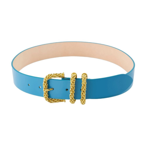 An exquisite leather belt by By Far showcases a vibrant blue hue with a glossy finish. The striking gold-tone buckle and braided loops offer a sophisticated accent to your wardrobe, while multiple adjustment holes ensure a perfect fit for various styles.