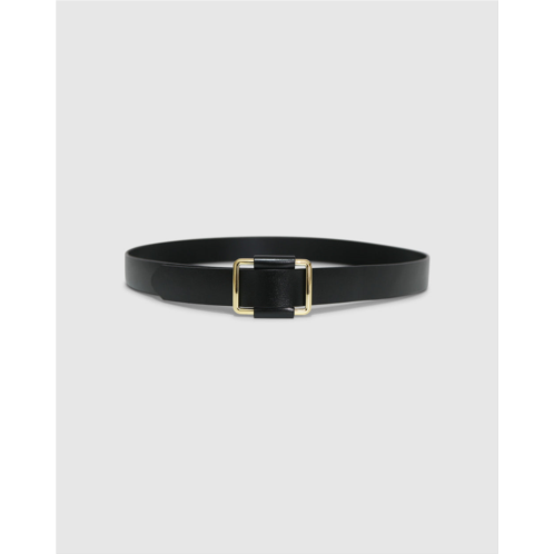 A sleek staple with a modern edge. This leather belt features a smooth finish and a minimal silhouette, elevated by a polished gold-tone buckle. Designed to pair effortlessly with denim, tailoring, or cinched over dresses.