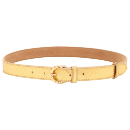 The perfect belt can really tie an outfit together and this one is no exception. Classic in its design and built to last, this belt can complement any outfit.Elevate your ensemble with the Women's Gia Twisted Buckle Belt, part of Ulla Johnson's Autumn/Winter 2024 collection. This exquisite piece features Ulla Johnson's uniquely twisted hardware made from antique brass, set against luxurious gold Python leather. Composition - 100% Leather. Designed to fit true to size, it's the perfect accessory to complement dresses, tailoring, and handcrafted denim.