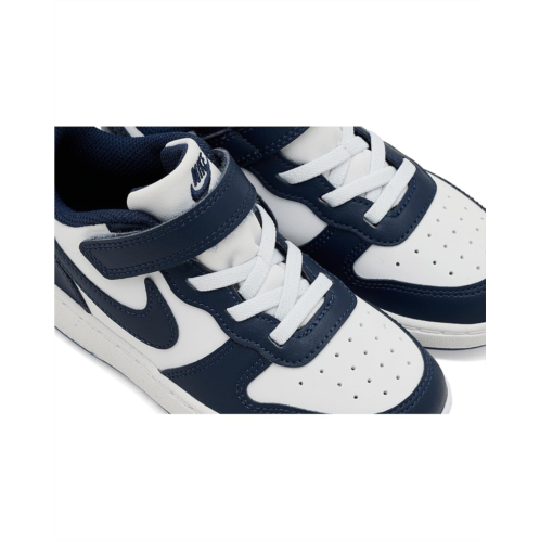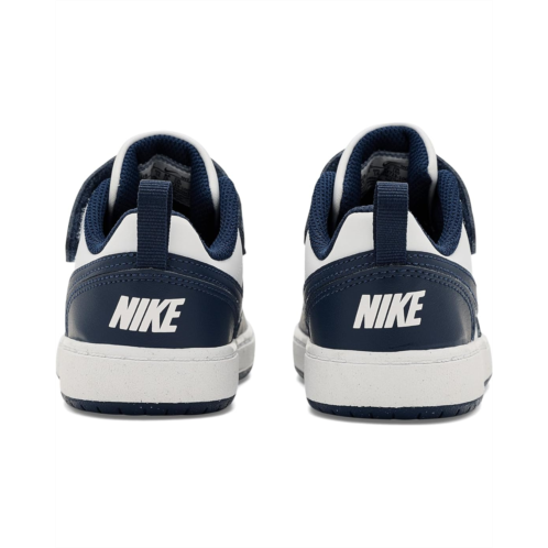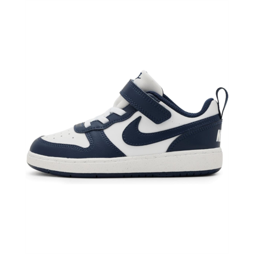 - The Nike Kids Court Borough Low Next Nature shoes feature grooves in the outsole that help make it flexible, so every step feels natural. These low-top shoes are made of a rubber insole and synthetic rubber lining. The faux leather upper is styled with a hook-and-loop strap and elastic laces for a secure fit and easy wear. Offering a perfect blend of style and durability, these lace-up sneakers are a great choice for your kid's footwear collection.