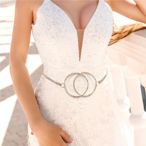 [US] FASHNZFAB rhinestone pave double open circle chain belt