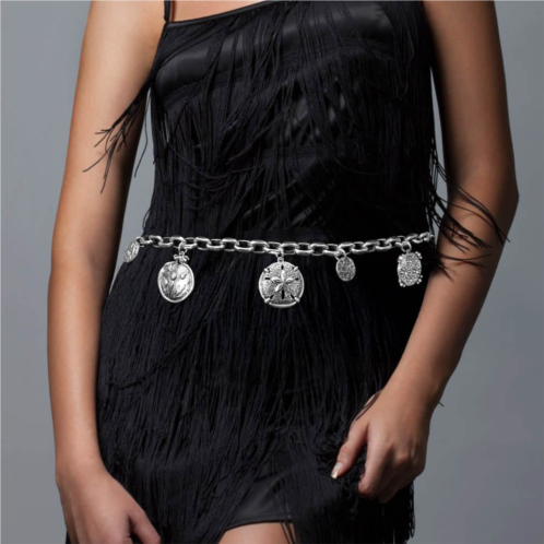 [US] FASHNZFAB chunky boho embossed coin flower sand dollar medallion charm station waist chain belt