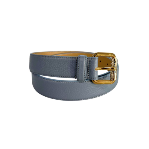 Infuse your wardrobe with Italian elegance thanks to this Borbonese leather belt. Crafted with meticulous attention to detail, it features an adjustable design, ensuring a flawless fit for any silhouette. The belt’s deep blue hue adds a touch of sophistication, perfect for cinching your favorite dresses or high-waisted trousers. Embellished subtly with an internal logo and secured with a lustrous gold buckle, it’s a statement of luxury for the fashion-forward individual.