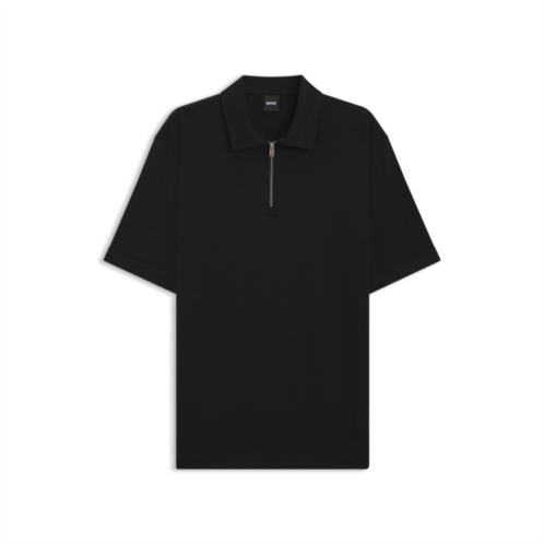 [US] BOSS zip-neck polo shirt with pique weave