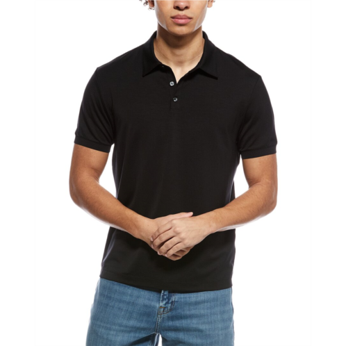 - Noran Jersey Polo Shirt In Black With Spread Collar, And Ribbed Trim