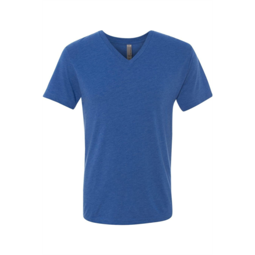 4.2 oz./yd, 50/25/25 polyester/combed ringspun cotton/rayon, 32 singles. Fabric laundered . Set-in 1x1 baby triblend rib collar with front coverstitching. Side seams. Satin label.
