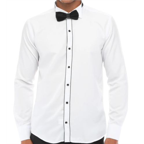 [US] TruClothing white wing collar double cuff piping shirt with stripe