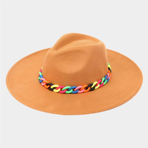 [US] FASHNZFAB colorful chain accented solid panama hat