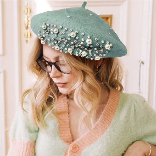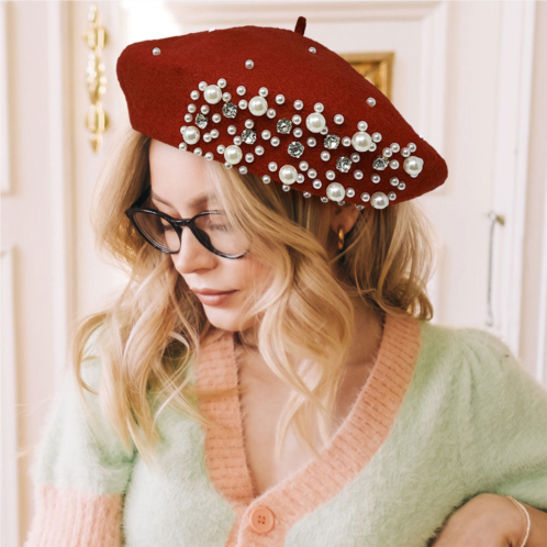 [US] FASHNZFAB pearl stone embellished wool blend beret hat