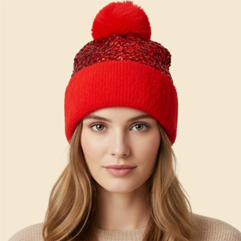 Size - One SizeMaterial - 100% NylonShine bright in a sequin pom pom beanie hat, designed with a sparkling sequin body and a soft, fluffy pom top. Perfect for adding fun flair to winter outfits, this beanie keeps you warm while standing out with playful charm. Ideal for casual wear, holiday looks, or festive outdoor gatherings.
