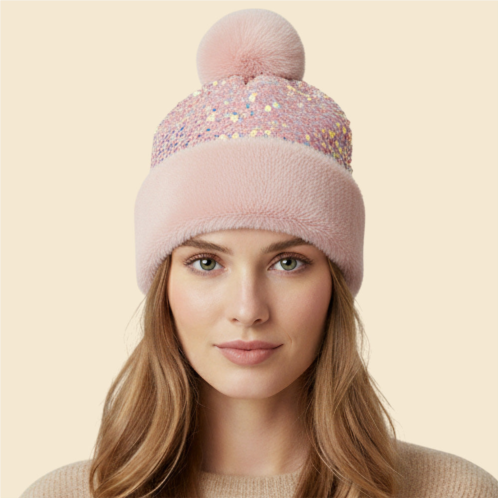 [US] FASHNZFAB sequin embellished pom pom beanie hat
