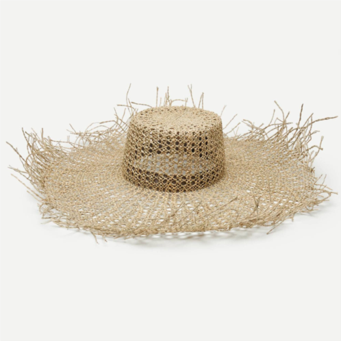 Turn heads in this stylish and chic hat. Not only is this accessory a must for keeping the sun out of your face, it will also be the perfect complement to any cute warm-weather outfit.Our Marley ultra-wide brim boater is made of seagrass straw and features a raw fringed brim. The hand woven open weave creates beautiful shadows when worn. Size - O/S (57cm) with a velcro size adjuster tucked inside the inner sweatband for a customizable fit.