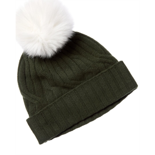Introducing the Hannah Rose Wide Cable Cashmere Hat, a luxurious addition to your winter wardrobe. Crafted in 100% cashmere, this hat features a wide cable detail and a wide rib cuff for a stylish touch. The fox fur pom adds a playful element to the design. This hat measures 10.5 inches in length and is available in a stunning green color. Imported and meant for dry clean only, this hat is perfect for elevating your winter look. Embrace the fresh and feminine basics of the Hannah Rose brand with this must-have accessory. Please note that all measurements are approximate and slight variations may occur.