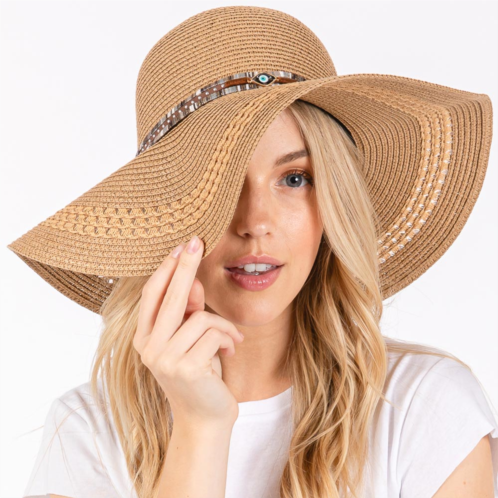 [US] FASHNZFAB wide brim straw sun hat with evil eye and multi design band