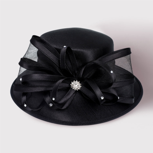 Crown Circumference - 23'Crown Height - 3.5'Brim Height - 3.5'Material - 100% PolyesterChic wide brim dress hat featuring an elegant ribbon bow accent, perfect for church, events, or formal outings. Designed to add sophistication and style, this statement hat elevates any polished ensemble with a graceful finishing touch.