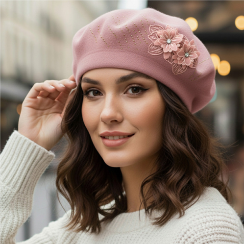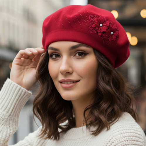 Size - One SizeMaterial - 100% AcrylicEmbrace effortless elegance with this floral embroidered beret hat. Designed with delicate embellishments and classic structure, it adds a feminine, sophisticated touch to your cold-weather looks while keeping your style timeless and chic for any outing.