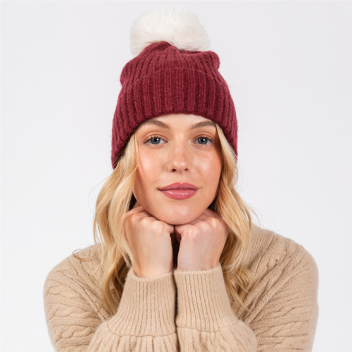 [US] FASHNZFAB solid color pom pom two tone beanie hat
