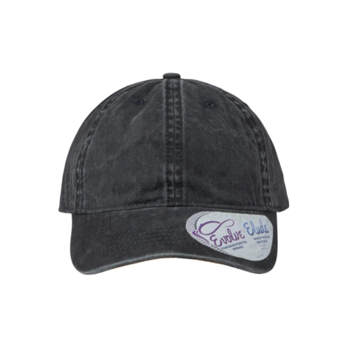 100% cotton pigment-washed twill. Unstructured, six-panel, low-profile. Pre-curved visor, pattern undervisor and seam tape. Elude makeup resistant, breathable, moisture-management pattern sweatband. Evolve concealed ponytail opening. Antique brass tri-glide buckle closure. This product meets the following Sustainable Style subcategory - Sustainable Materials - Contains 100% BCI cotton.