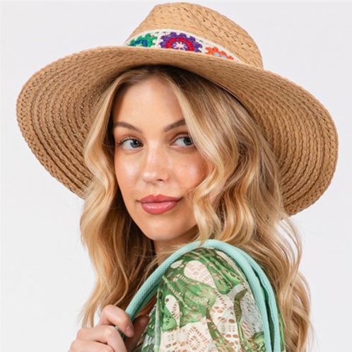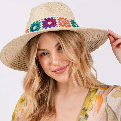 [US] FASHNZFAB floral crochet band straw hat