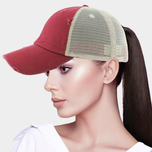 [US] FASHNZFAB vintage mesh back ponytail baseball cap