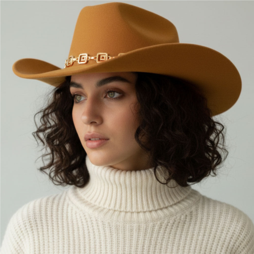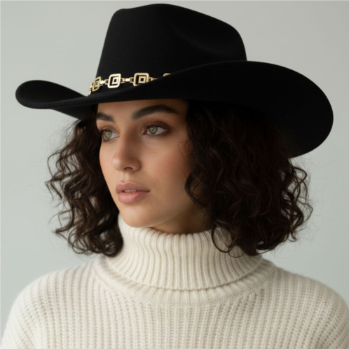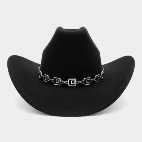[US] FASHNZFAB geometric metal chain accent western cowboy fedora hat