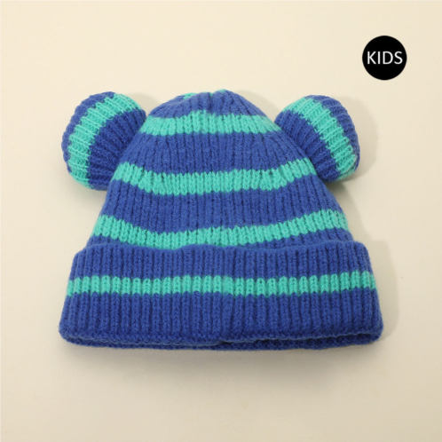 [US] FASHNZFAB kids cute bear ear striped knit winter beanie hat