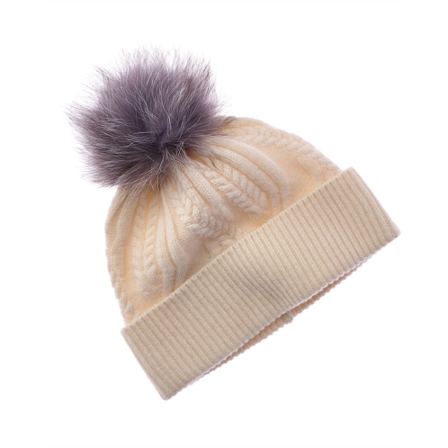 Stay warm in style with the Amicale Cashmere Winding Cable Cuff Wool & Cashmere-Blend Hat. This luxurious hat features a fur pom for added flair and measures 8 1/2 inches from the top to the hem, excluding the pom. Made with a blend of 90% wool and 10% cashmere, this hat is both cozy and fashionable. The real dyed fox fur pom adds an extra touch of elegance. This packable hat is perfect for on-the-go style. Dry clean only. Imported. Please note that all measurements are approximate and slight variations may occur. Add a touch of sophistication to your winter wardrobe with this stunning hat.