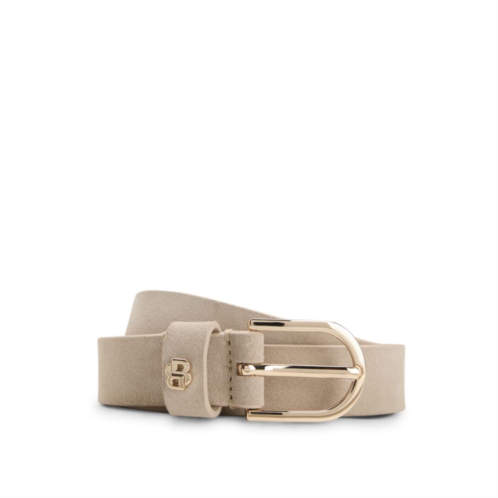 With a gold-tone Double B monogram on the keeper, this 2.5cm BOSS Womenswear belt strikes an elegant note. Crafted in soft suede. For the best fit, we advise ordering a belt one size larger than your waist size.