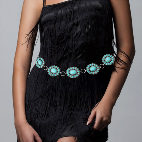 [US] FASHNZFAB boho vintage western turquoise stone pointed concho chain belt