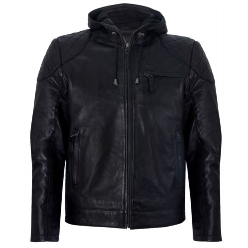 [US] Infinity Leather mens black vintage zipped Leather hooded bomber biker jacket