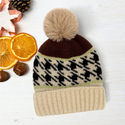 [US] FASHNZFAB houndstooth patterned pom pom beanie hat