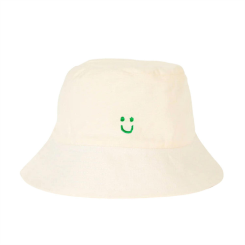 Block the sun in style with this adorable hat that will complement any outfit. Expertly crafted to elevate your style while providing a delightful touch of personality.100% cotton. 2.4' Brim. 22.5' Inner Circumference. Lightweight Bucket Hat. One Size. Smaller Brim. Shorter Crown. Green Smiley Embroidery. Signature Yellow Tag. Stitched Brim Details. Spot Clean