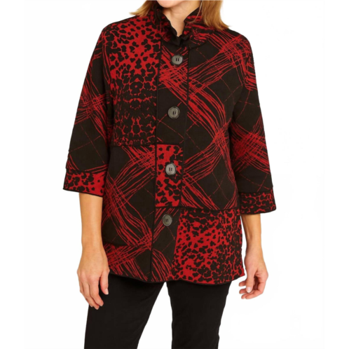 The coolest, most versatile utility jacket. Match it with your favorite pair of denim or throw it over any day dress.Introducing the Women's Rock Patch Jacket by Kamana, a striking piece that redefines utility wear with boho chic flair. Crafted from a blend of 85% Polyester, 13% Nylon, and 2% Spandex, this patterned jacket features three-quarter sleeves and a mockneck for a contemporary touch. The bold red hue and button closure emphasize its unique style. Care - Machine wash, tumble dry.