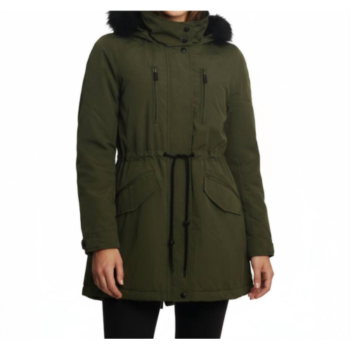 [US] CoffeeShop soft shell hooded coat with faux fur trim in green