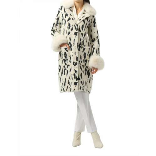 [US] Joseph Ribkoff animal print faux fur coat in winter white/black