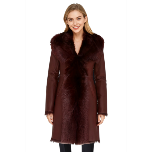 [US] Infinity Leather womens burgundy red toscana real sheep Leather hooded trench coat - verona
