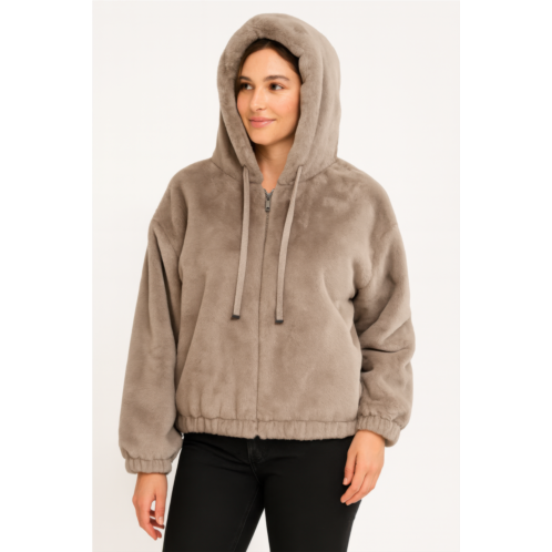Stay effortlessly cozy and stylish in our Plush Zip-Up Hooded Jacket in Taupe, the ultimate blend of comfort and casual chic. Crafted from ultra-soft faux fur fabric, this jacket offers a luxurious feel while keeping you warm during cool-weather days. The relaxed fit and elastic hem provide a flattering silhouette, while the adjustable drawstring hood adds a touch of practicality and laid-back charm. Perfect for layering over your favorite tees or sweaters, it’s an essential piece for relaxed weekends, coffee runs, or travel days.