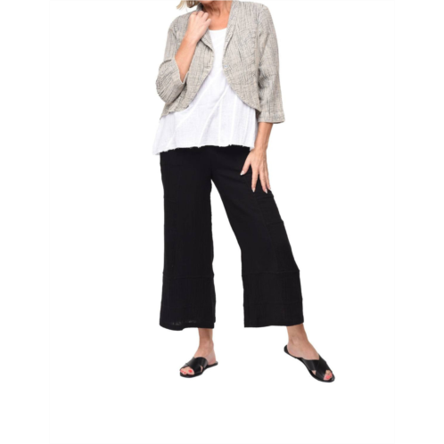 A casual yet cool jacket that every closset needs.Elevate your wardrobe with the Landon Jacket by Tulip Clothing, a casual yet chic piece in the soothing shade of Elephant. Featuring three-quarter sleeves and crafted from 100% cotton gauze, this jacket is designed with style and comfort in mind. The short jacket boasts a small rounded collar, princess seams, pintucks, and a back peplum hem for a flattering fit. Closure - Pull-on. Length - XS 20.5', S 21', M 21.5', L 22', XL 22.5', and chest measurements cater to a range of sizes. Perfect for travel and casual outings, it embodies a textured, minimalist style.